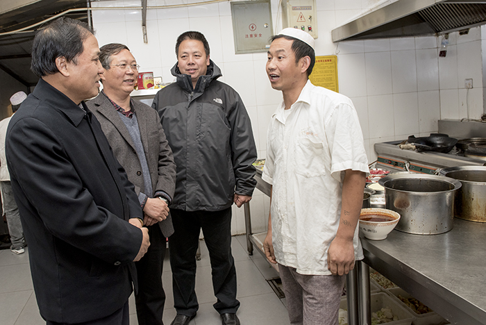 座谈结束,冯典江一行来到烟台大学民族餐厅,看望了正在就餐的少数民族同学,并与同学们和餐厅工作人员亲切交谈。随后,冯典江一行来到烟台大学校史展馆,对学校三十年来取得的辉煌成就表示赞赏,并祝愿烟台大学再上新台阶。